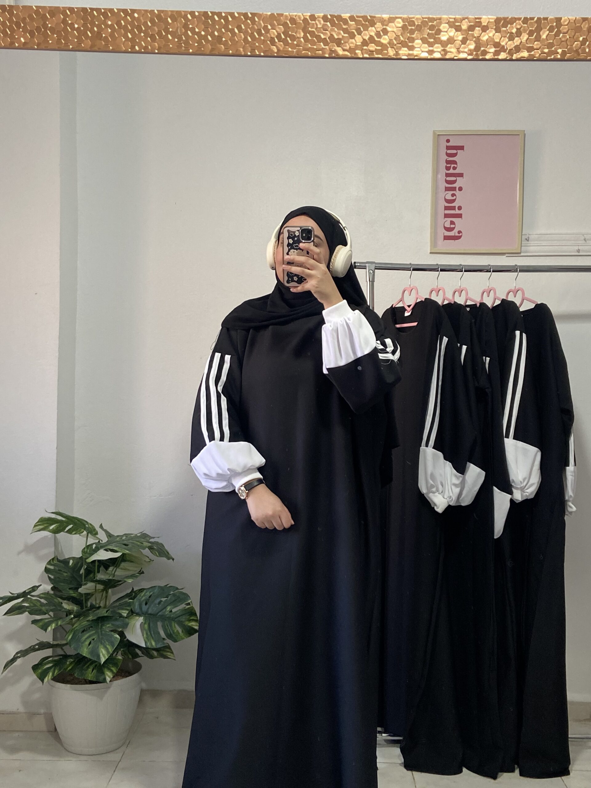 حجاب سبورتي بتصميم عصري يجمع بين **الأسود والأبيض**، مع لمسة رياضية على الأكمام تضيف إطلالة مميزة ومناسبة لكل يوم. يتميز الحجاب بكونه **فضفاضًا ومريحًا**، مصنوع من قماش عالي الجودة لضمان الراحة والأناقة.
